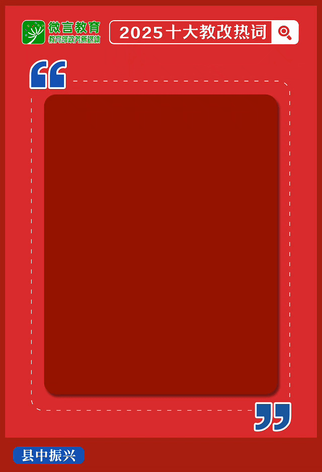 近日,教会部新闻办蚁集国度话语资源监测与参谋中心推出“2025十大教改热词”,展现教会强国建造的纯真图景。今天,让咱们一同走进“2025十大教改热词”系列解读第六期,本期聚焦热词“县中振兴”,跟小编通盘来看——